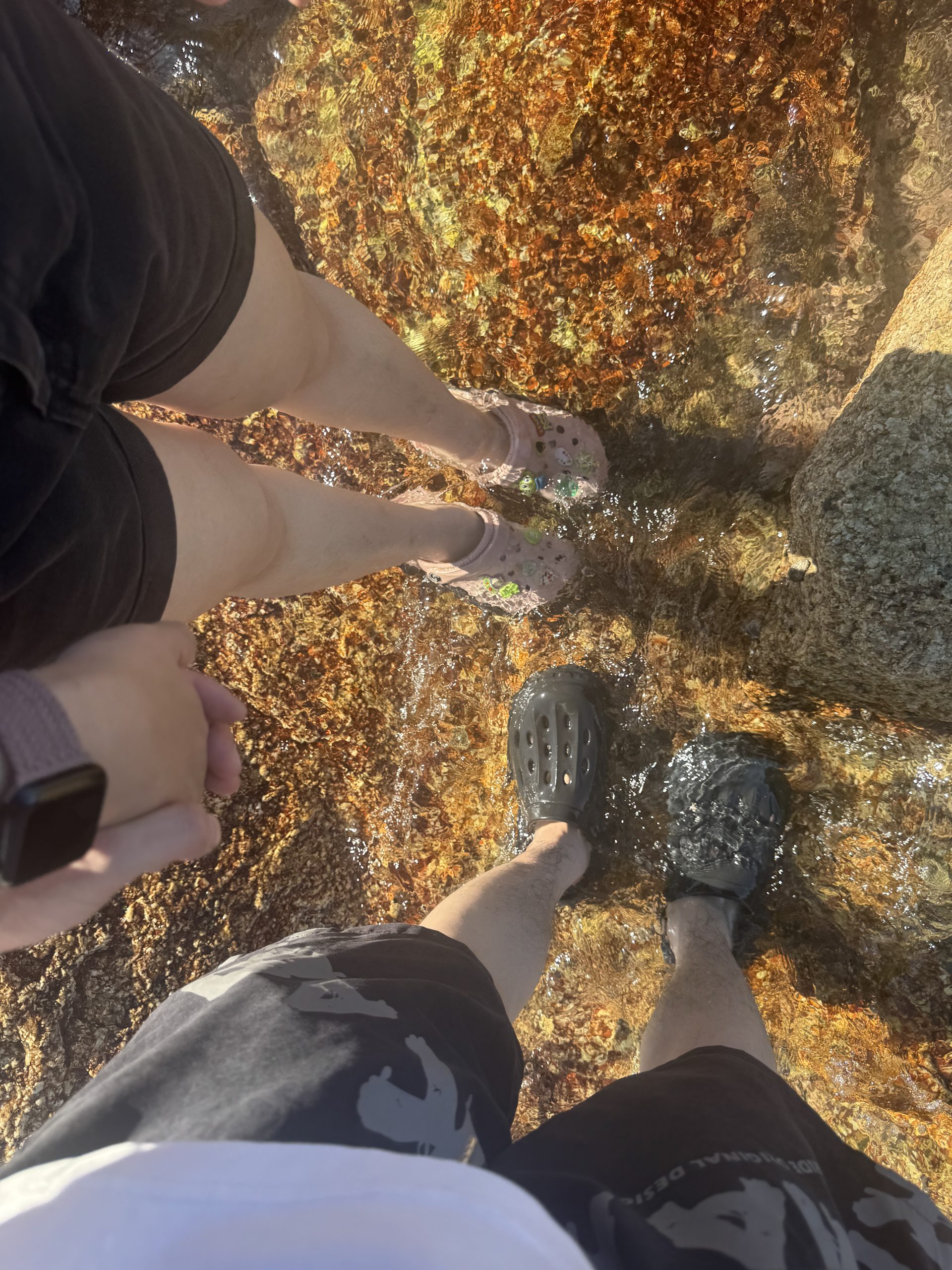 我和琪琪去过很多海边,琪琪总是缺乏了一点冒险的勇气,每次在海边都不敢下水游,所以我们每次基本都在海边泡泡脚,踩着海水散散步吹吹海风,这一次我们到了玻璃海来游泳,琪琪能下去游泳给我的理由是,这里有安全员,游泳会很安全。