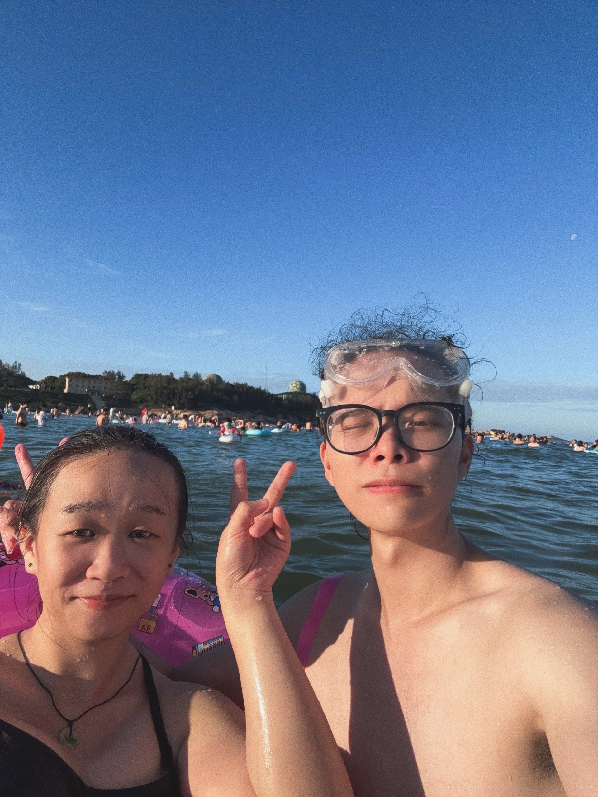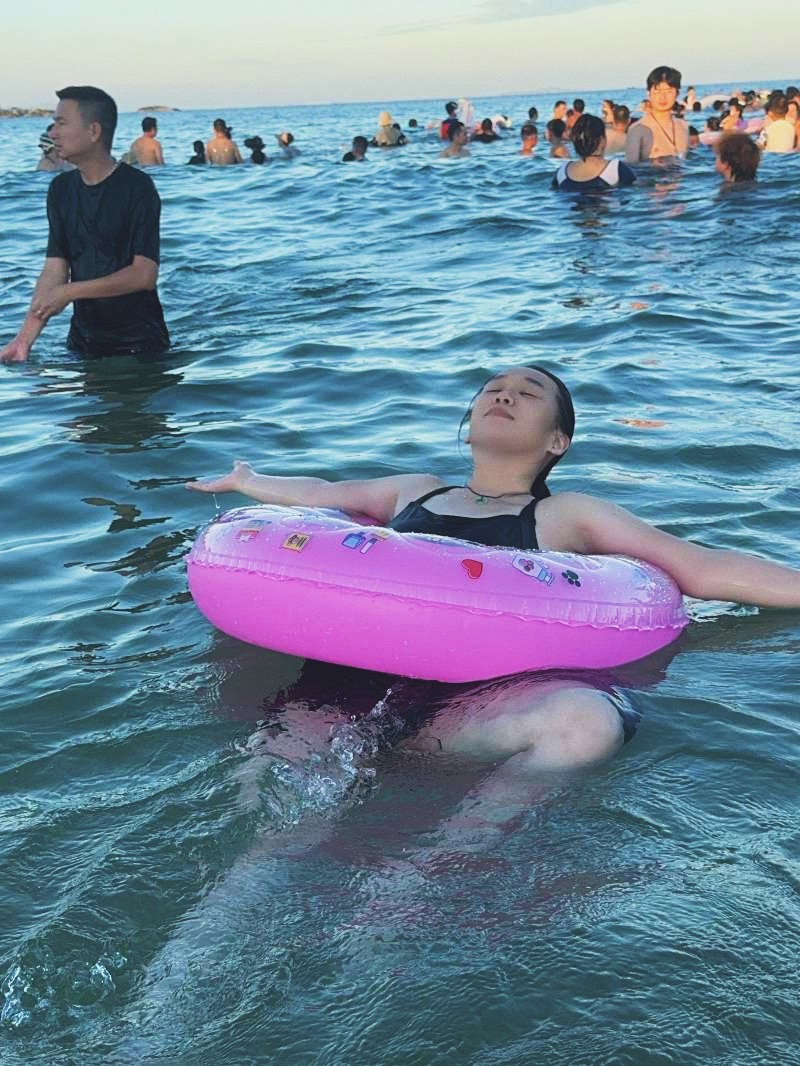 去之前我想买一个游泳圈她,她觉得没必要,但是在我的强烈要求下还是买了,殊不知她后面去海里游基本就没有离开过这个游泳圈。